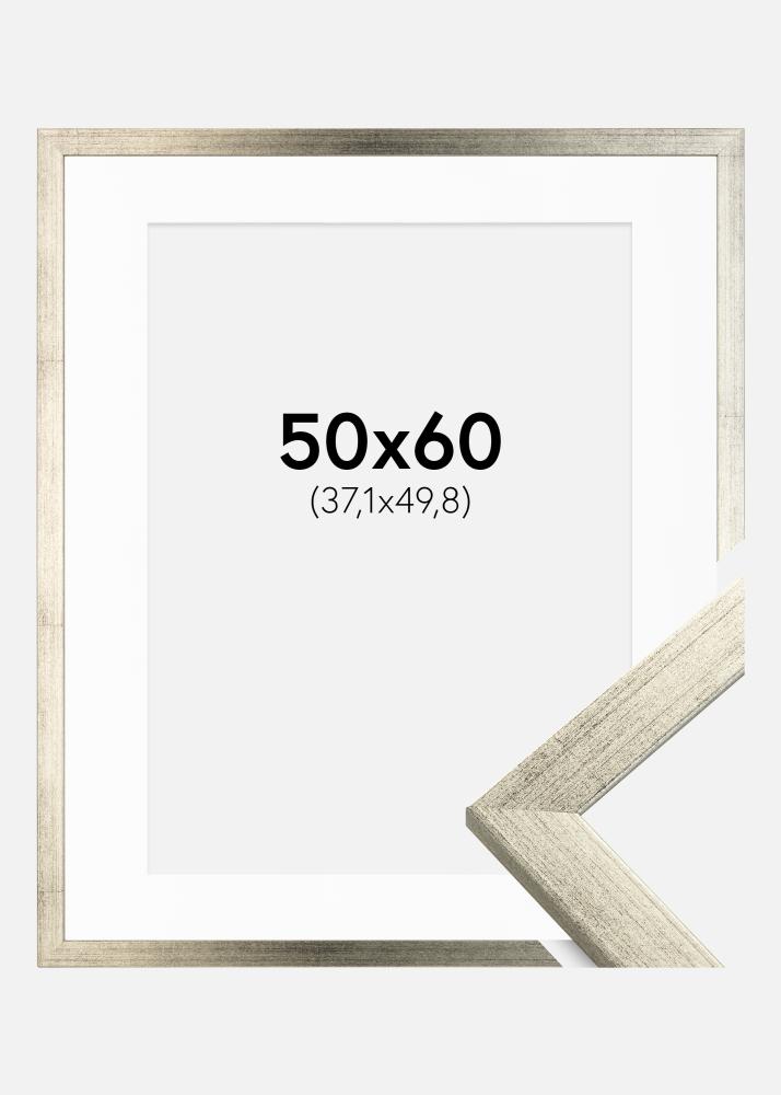 Moldura Stilren Prateado 50x60 cm - Passe-partout Branco 15x20 inches