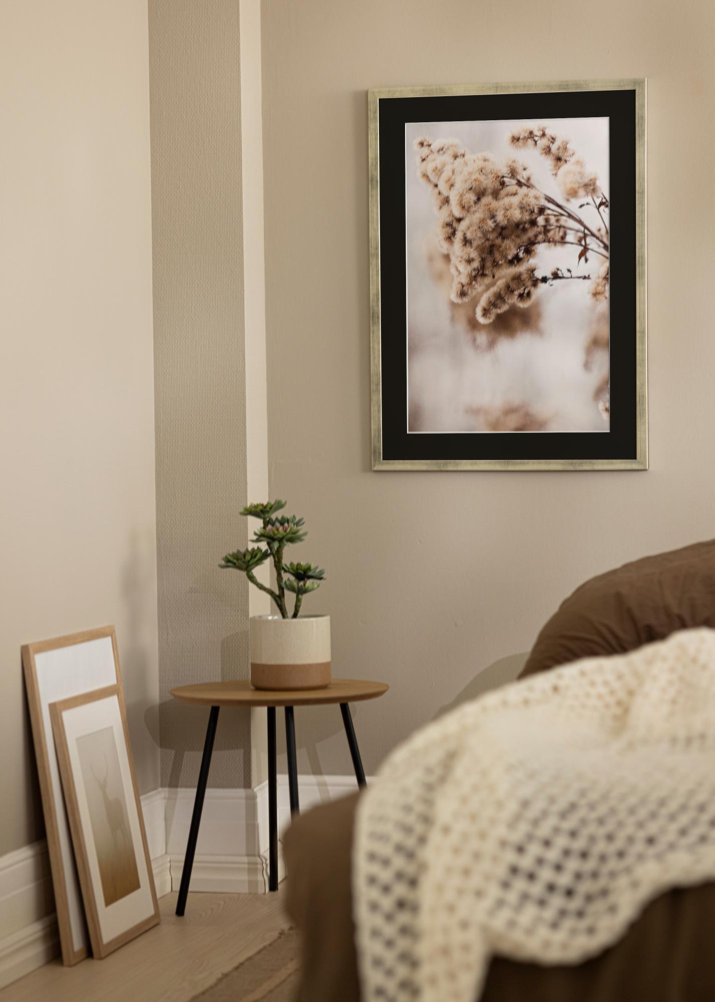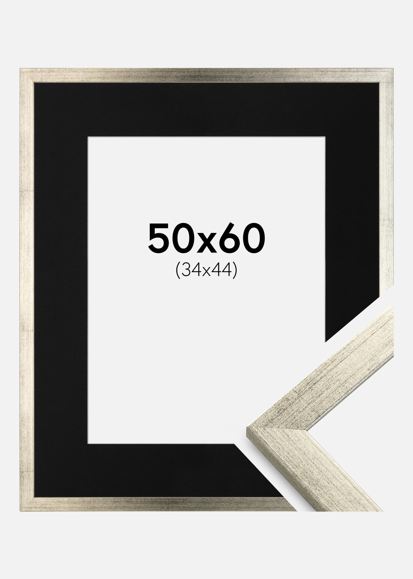 Moldura Stilren Prateado 50x60 cm - Passe-partout Preto 35x45 cm
