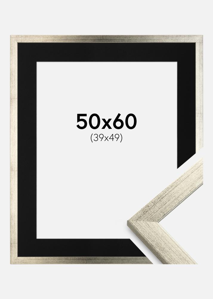 Moldura Stilren Prateado 50x60 cm - Passe-partout Preto 40x50 cm