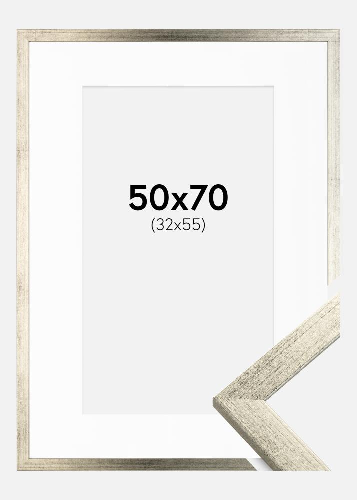 Moldura Stilren Prateado 50x70 cm - Passe-partout Branco 33x56 cm