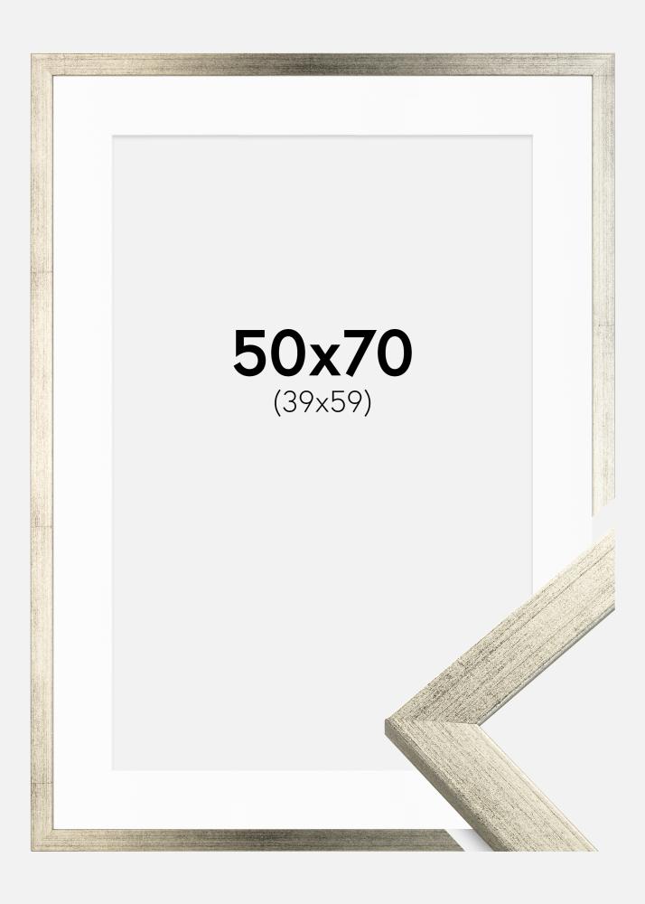 Moldura Stilren Prateado 50x70 cm - Passe-partout Branco 40x60 cm