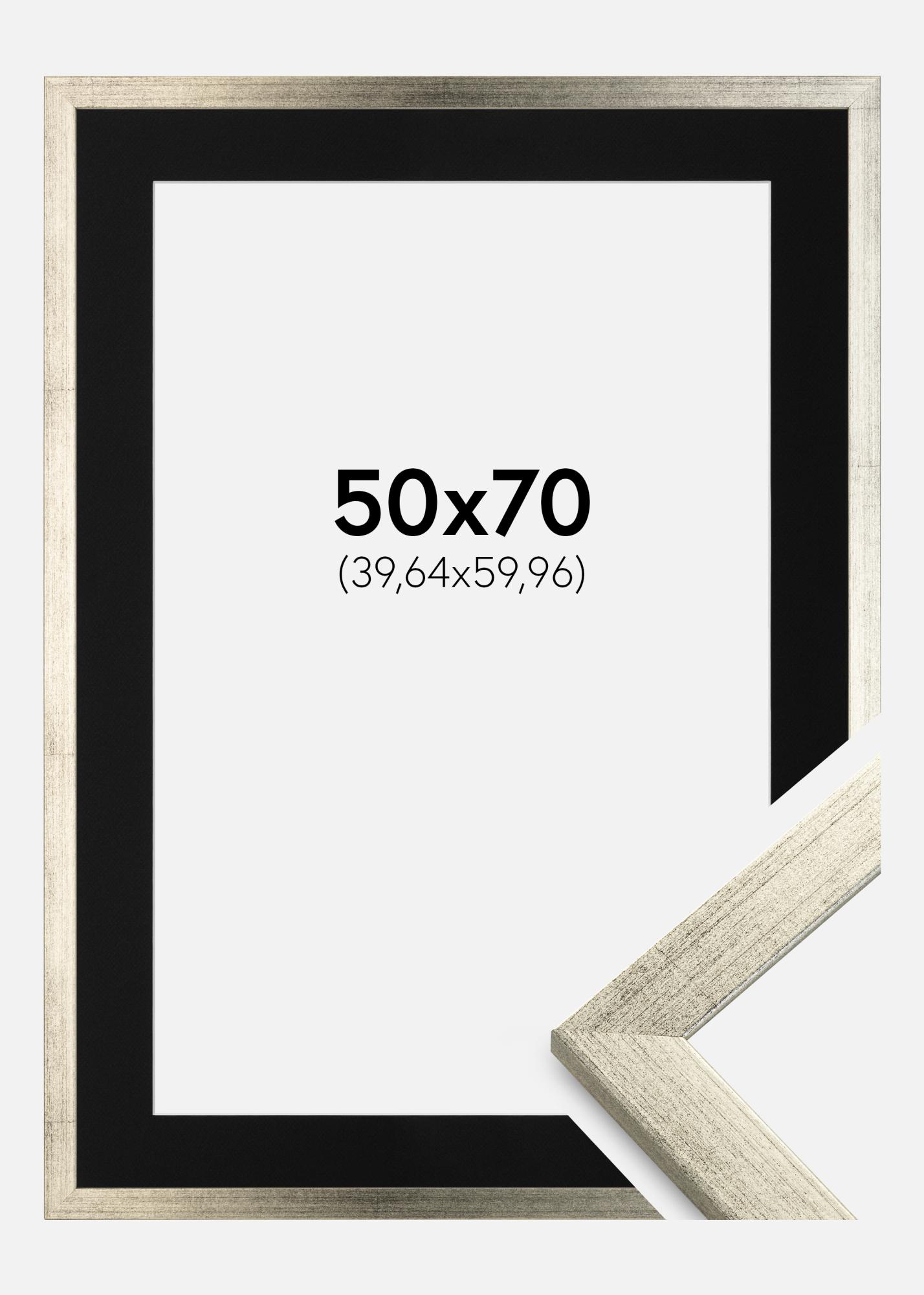 Moldura Stilren Prateado 50x70 cm - Passe-partout Preto 16x24 inches