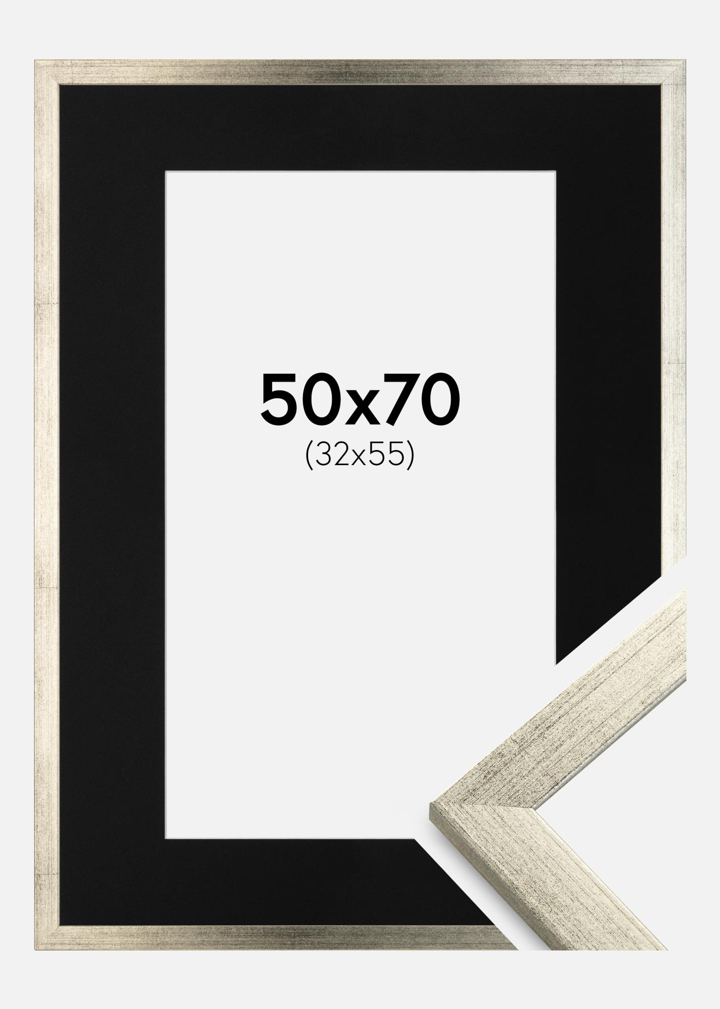 Moldura Stilren Prateado 50x70 cm - Passe-partout Preto 33x56 cm