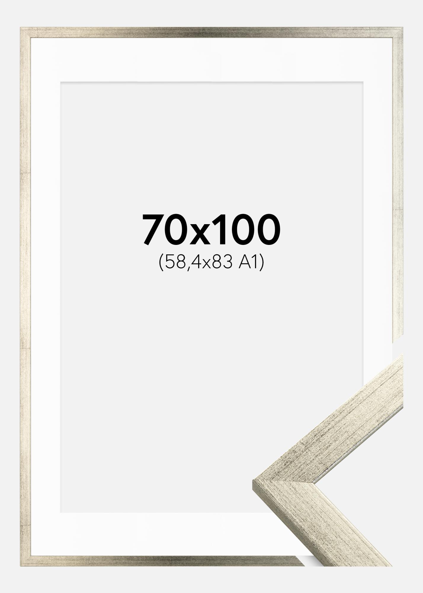 Moldura Stilren Prateado 70x100 cm - Passe-partout Branco 59,4x84 cm (A1)