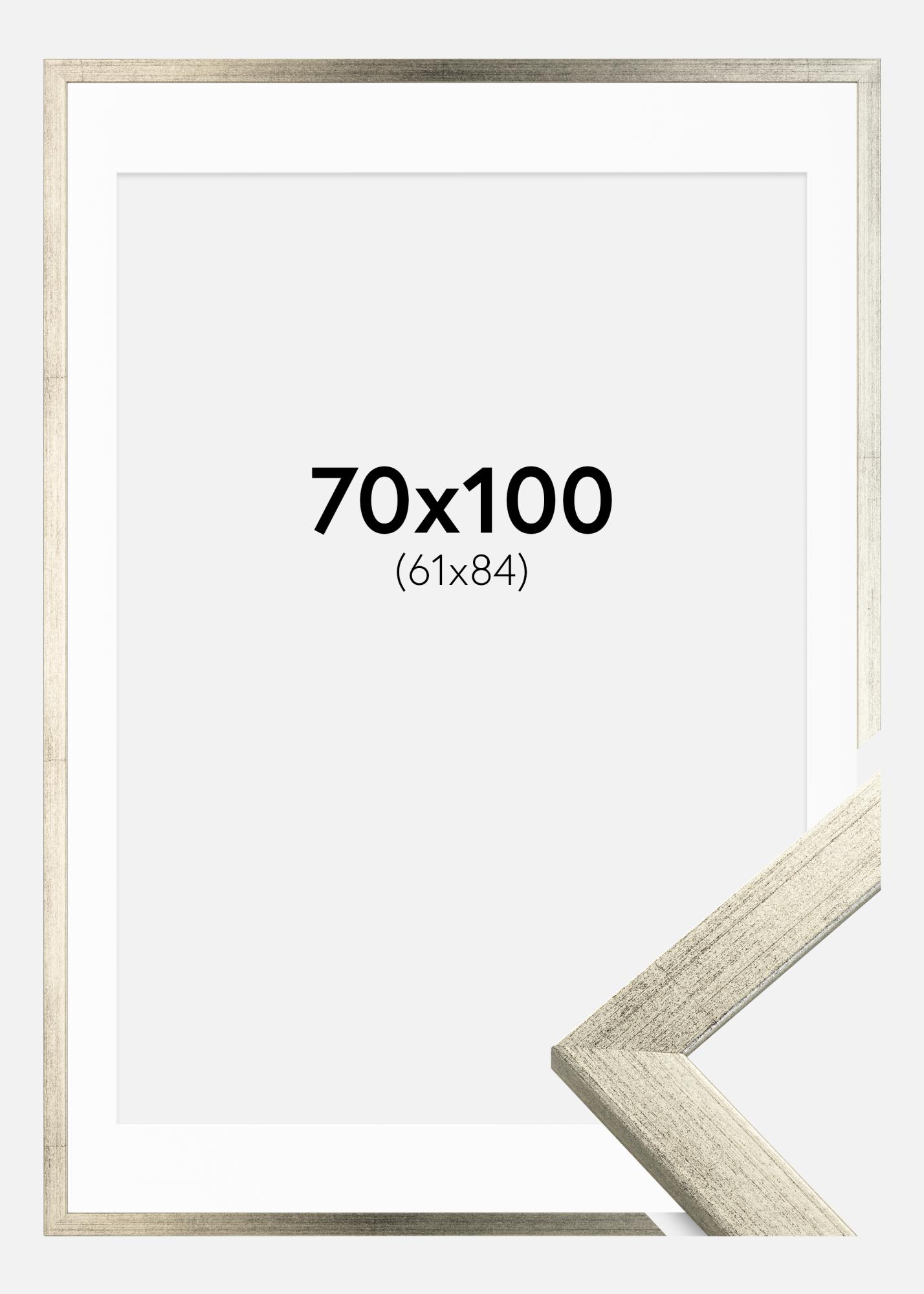 Moldura Stilren Prateado 70x100 cm - Passe-partout Branco 62x85 cm