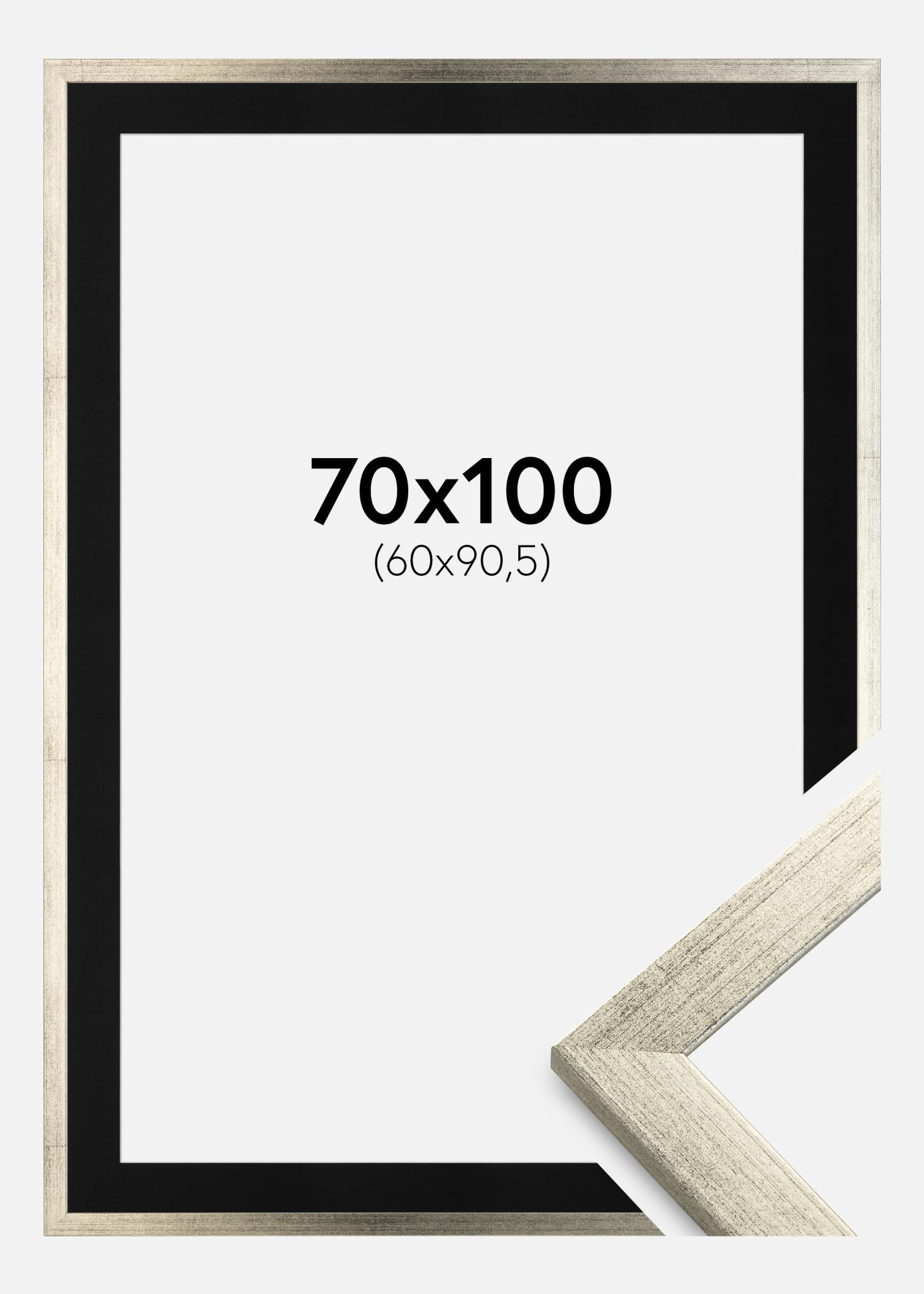 Moldura Stilren Prateado 70x100 cm - Passe-partout Preto 61x91,5 cm