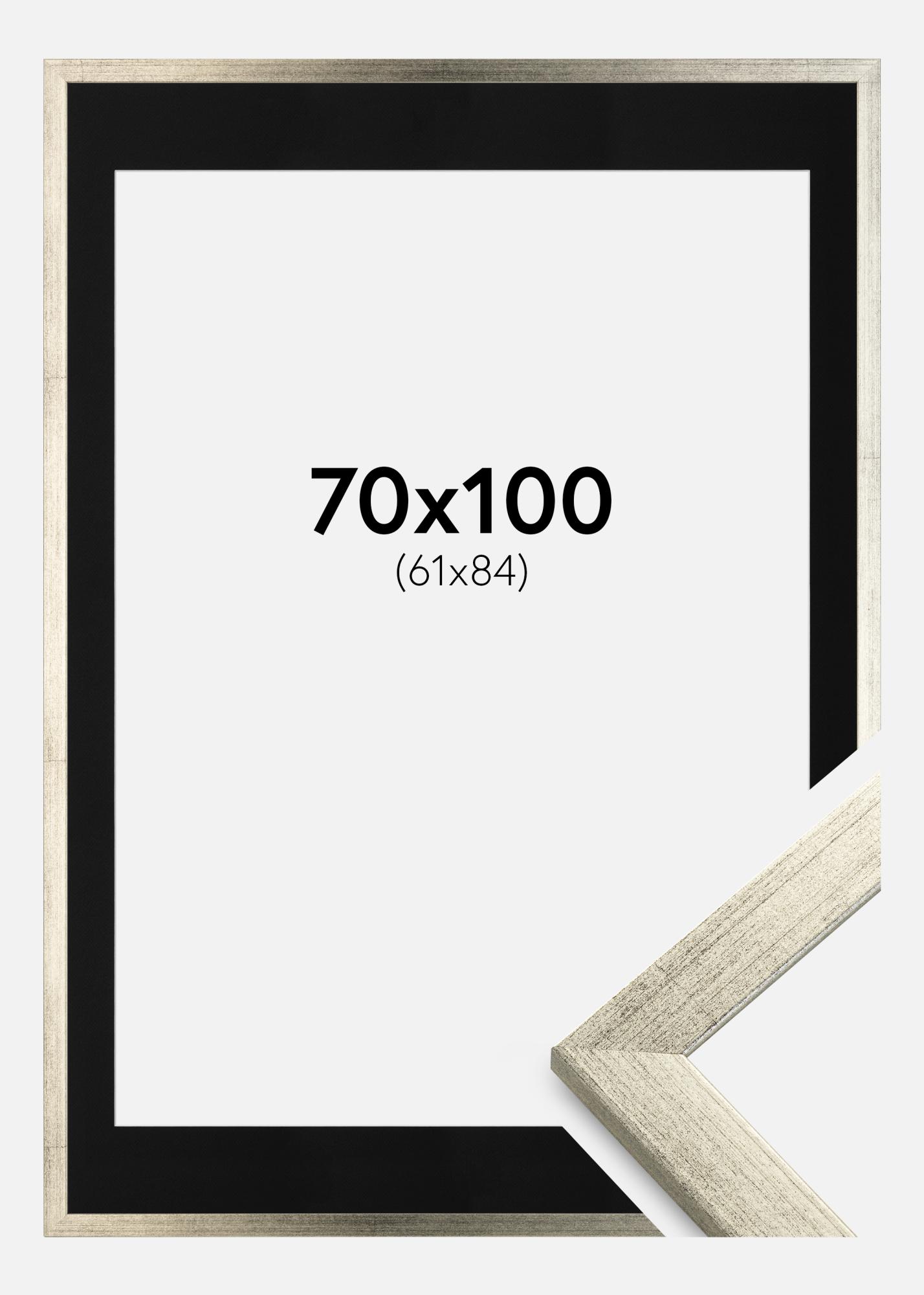 Moldura Stilren Prateado 70x100 cm - Passe-partout Preto 62x85 cm