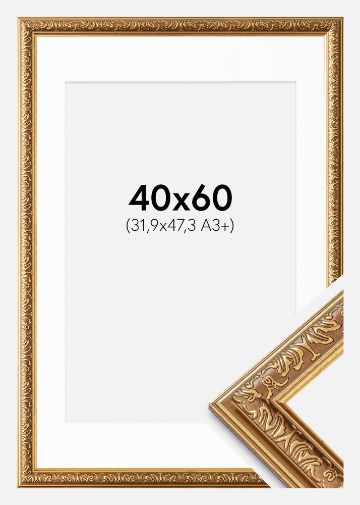 Moldura Swirl Ouro 40x60 cm - passe-partout Branco 32,9x48,3 cm