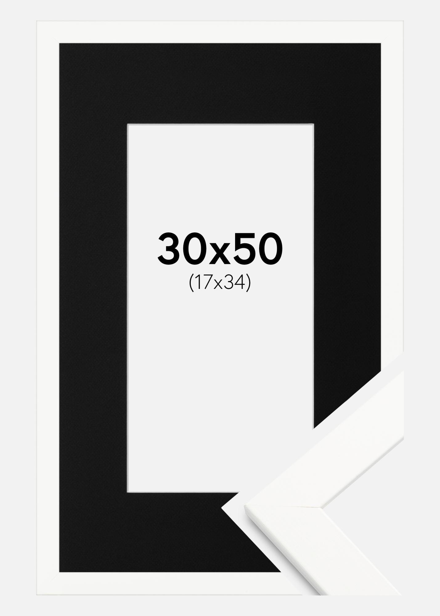 Moldura Trendline Branco 30x50 cm - Passe-partout Preto 18x35 cm