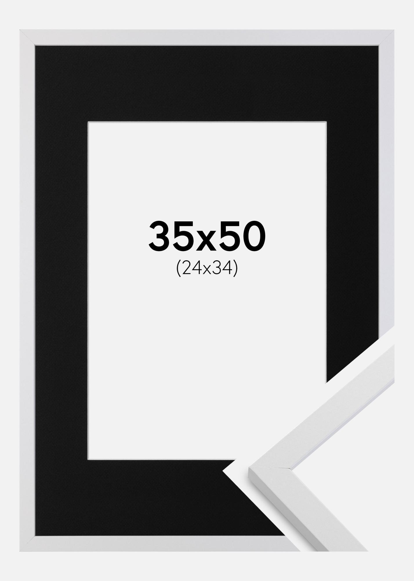 Moldura Trendy Branco 35x50 cm - Passe-partout Preto 25x35 cm