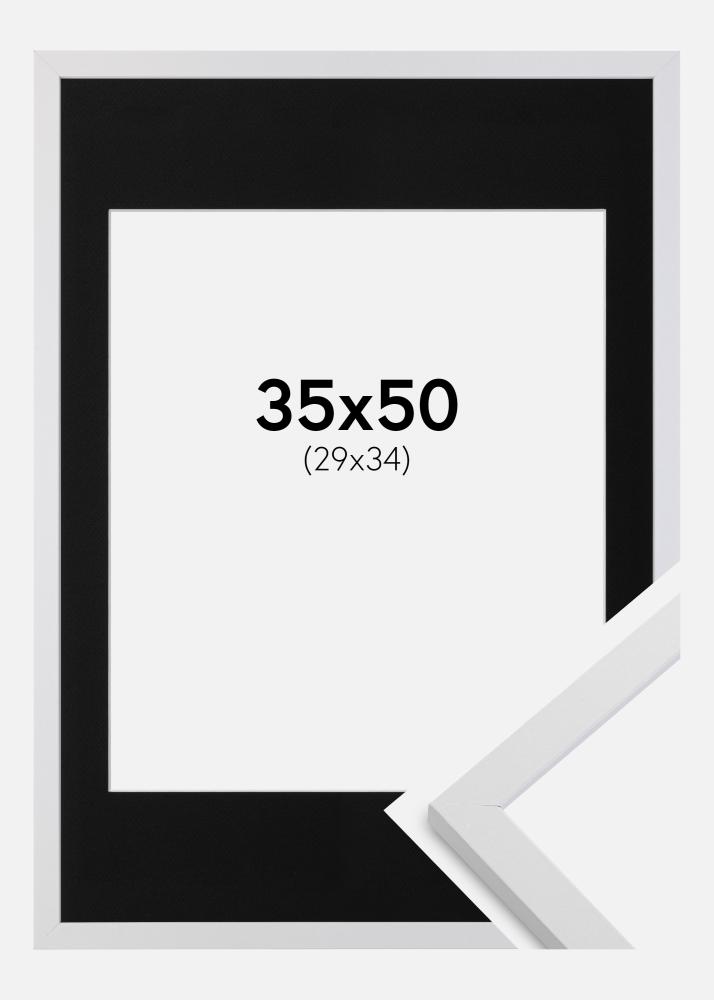 Moldura Trendy Branco 35x50 cm - Passe-partout Preto 30x35 cm
