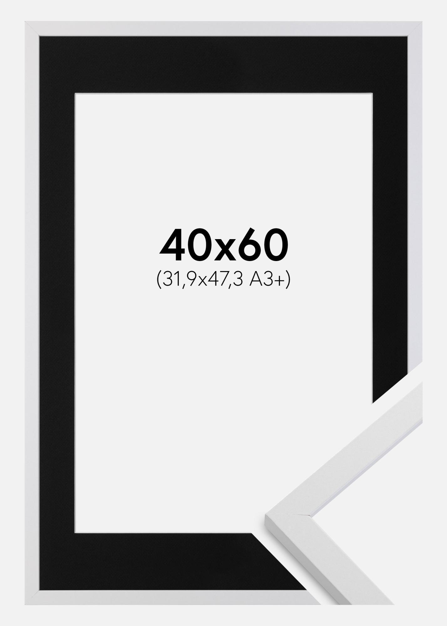 Moldura Trendy Branco 40x60 cm - Passe-partout Preto 32,9x48,3 cm (A3+)