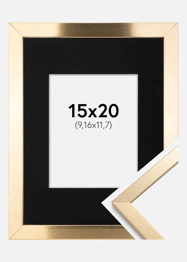 Moldura Trendy Dourado 15x20 cm - Passe-partout Preto 4x5 inches