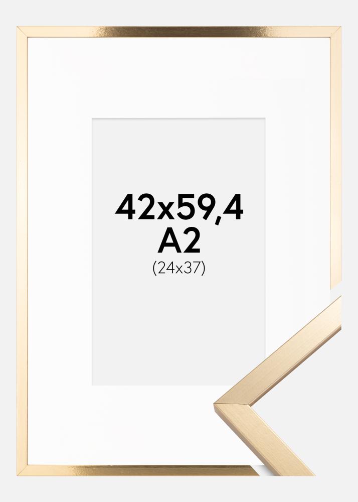 Moldura Trendy Dourado 42x59,4 cm (A2) - Passe-partout Branco 25x38 cm
