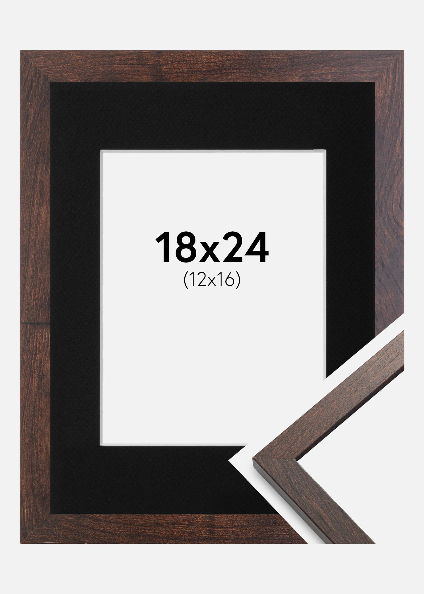 Moldura Trendy Nogueira 18x24 cm - Passe-partout Preto 13x17 cm