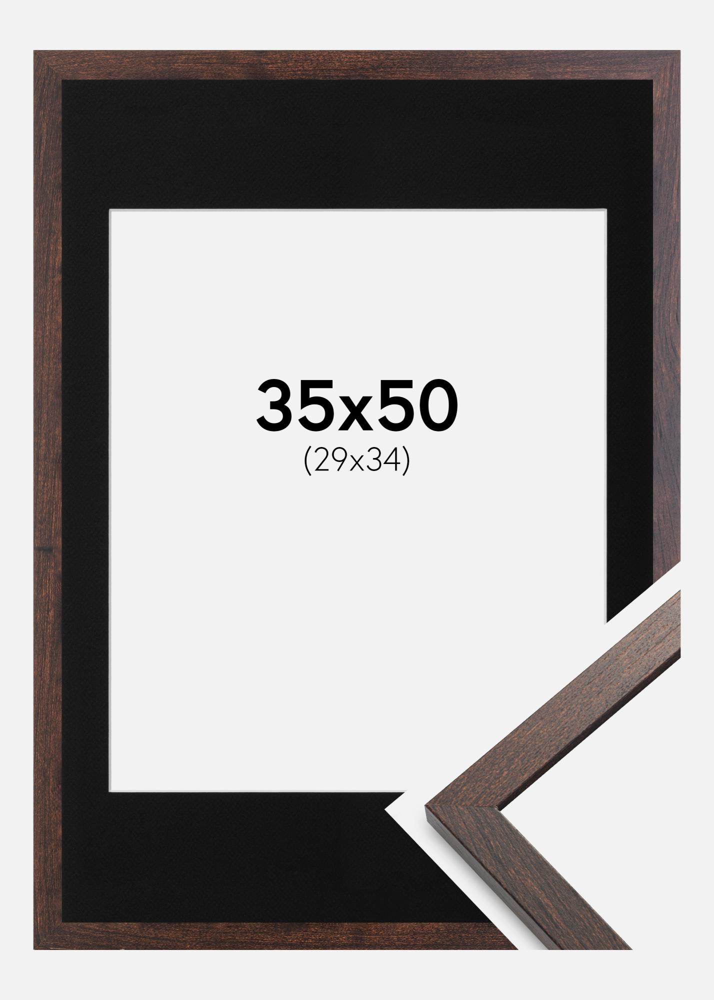 Moldura Trendy Nogueira 35x50 cm - Passe-partout Preto 30x35 cm