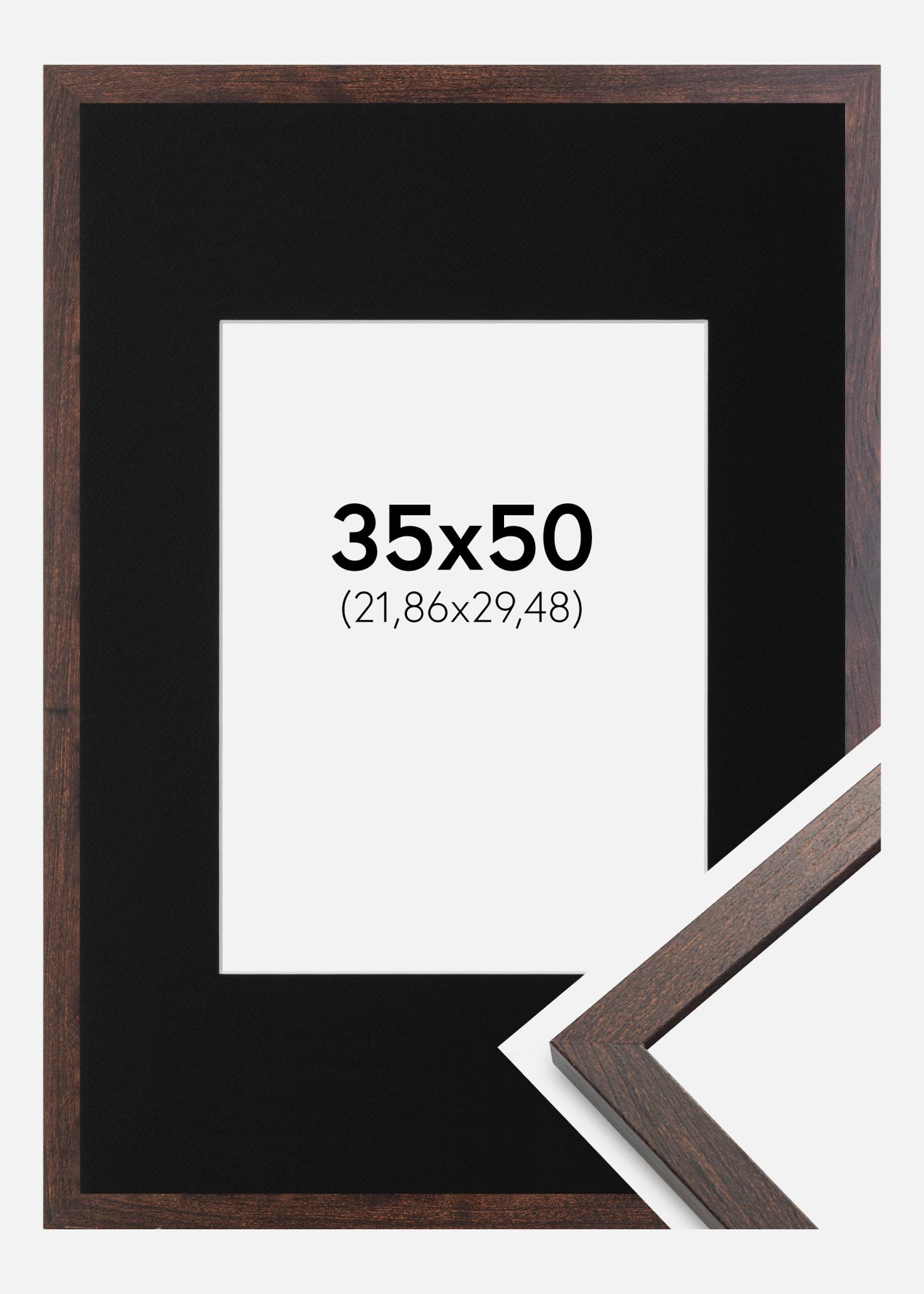 Moldura Trendy Nogueira 35x50 cm - Passe-partout Preto 9x12 inches