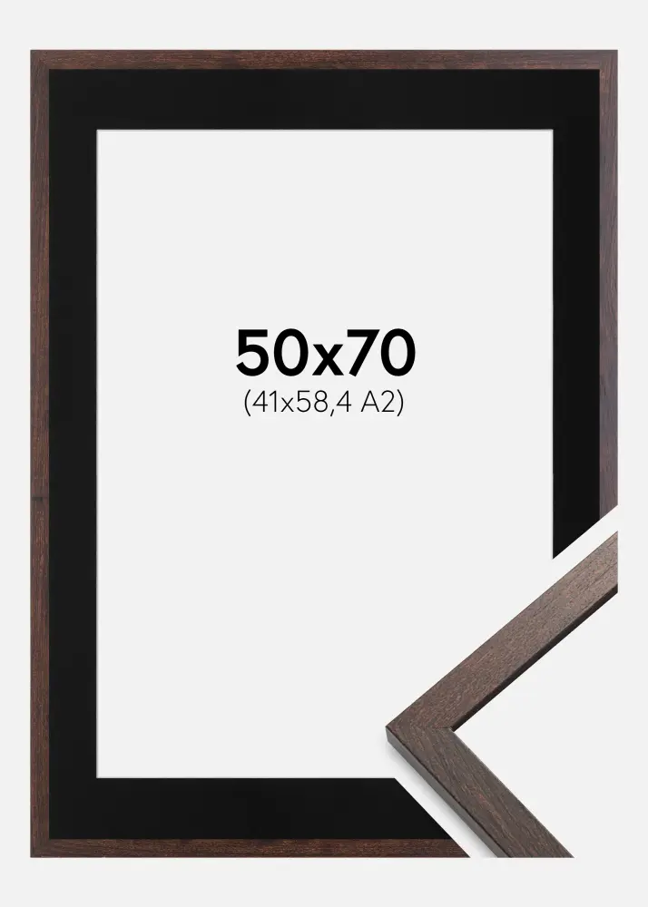 Moldura Trendy Nogueira 50x70 cm - Passe-partout Preto 42x59,4 cm (A2)