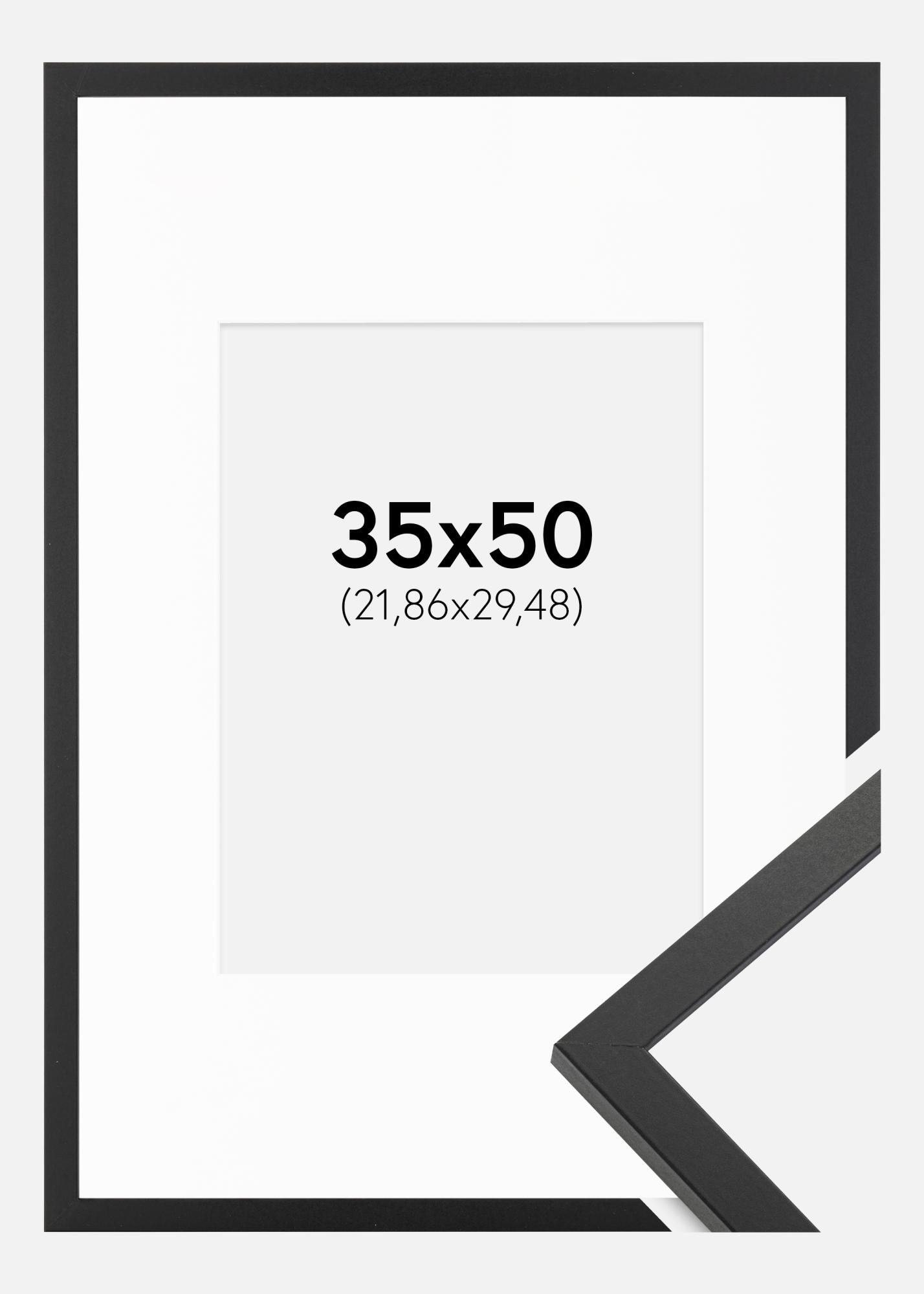 Moldura Trendy Preto 35x50 cm - Passe-partout Branco 9x12 inches