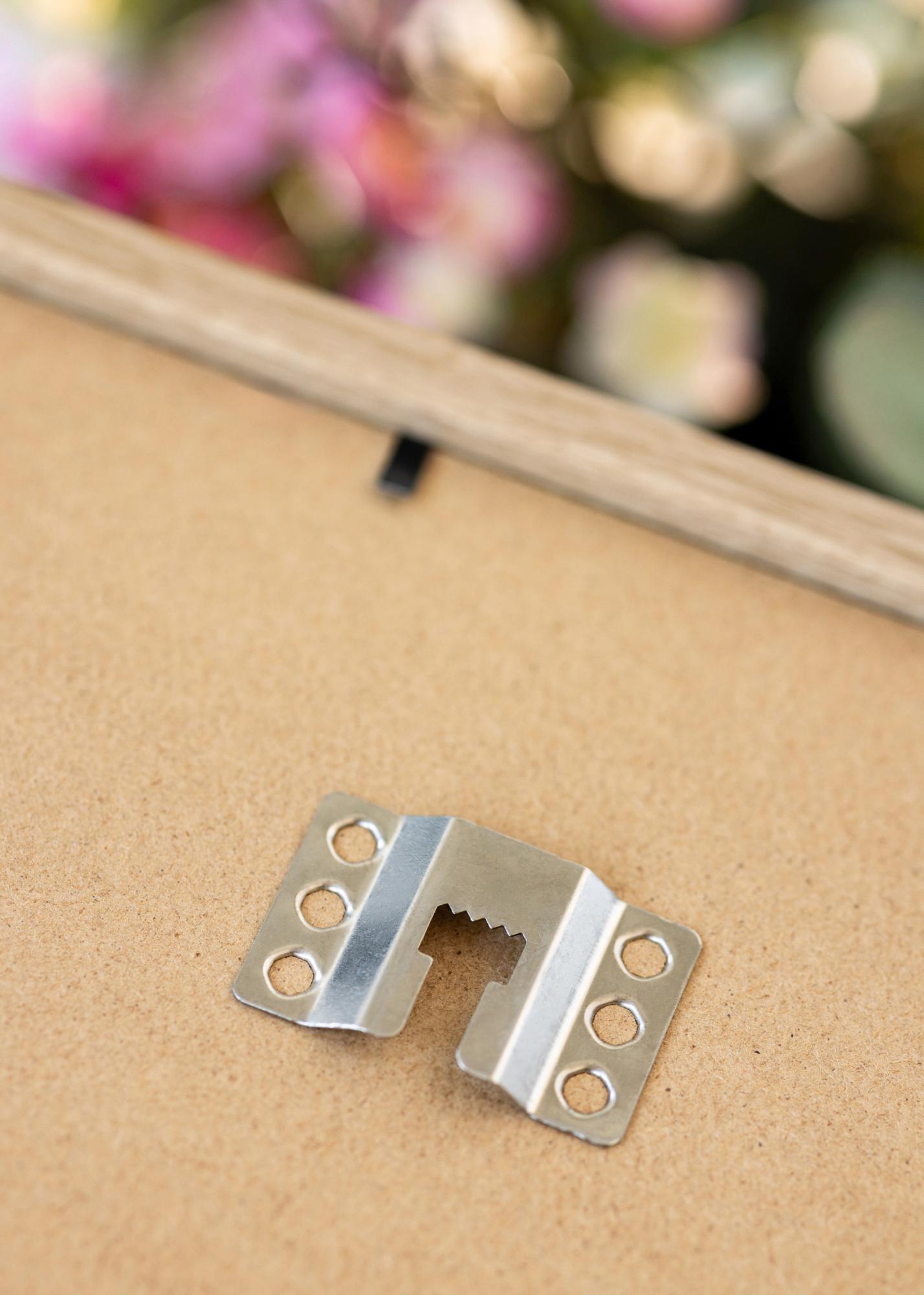 A moldura é feita de material MDF com uma superfície folheada em carvalho e tem um perfil de moldura fino de 14 mm. Há bastante espaço para complementar suas imagens com um passe-partout luxuoso, graças à profundidade interna da moldura de 12 mm.