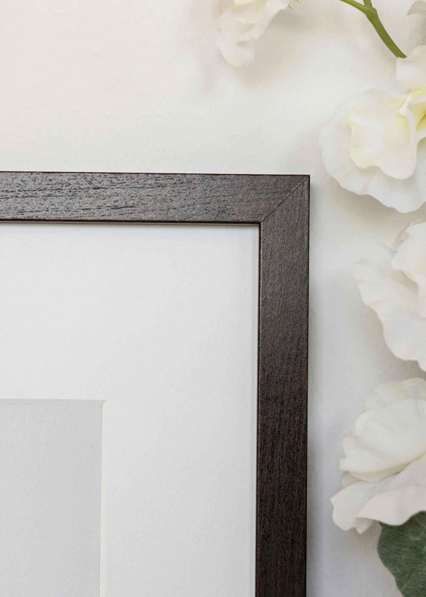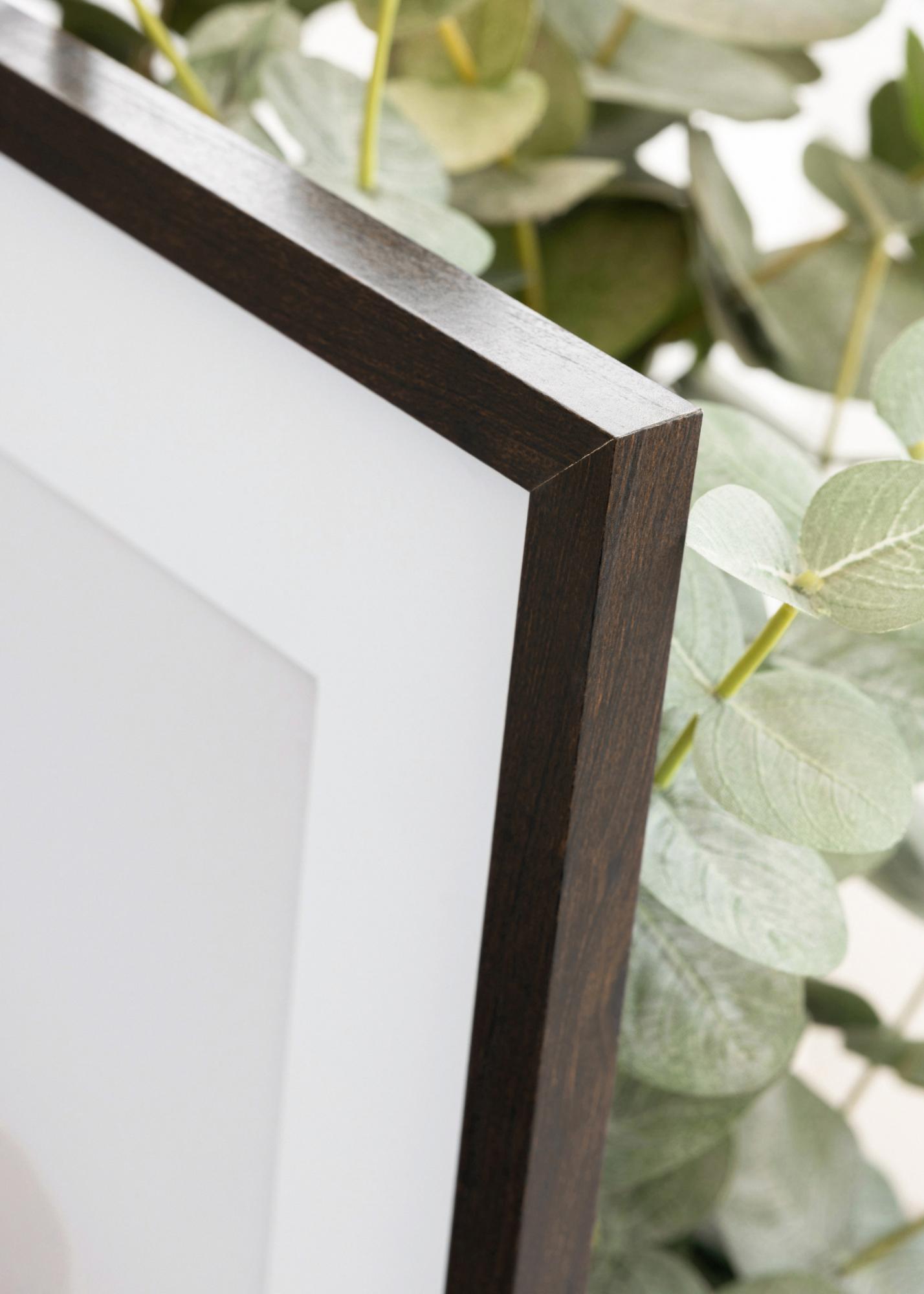 Uma moldura em tom de madeira de nogueira dá aos seus motivos uma moldura natural com alta elegância. Este é um modelo com uma moldura de 14 mm de largura com perfil quadrado clássico e vidro acrílico cristalino. O vidro acrílico é uma variante de vidro que é inquebrável e leve, tornando esta uma moldura adequada para aqueles que desejam uma suspensão mais leve.