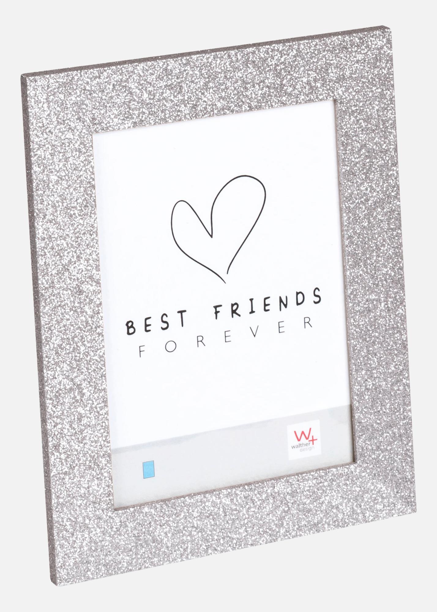 Moldura Twinkle Prata 10x15 cm é uma moldura cintilante que combina elegância e glamour de uma forma fantástica. A borda larga com acabamento brilhante reflete a luz lindamente e dá uma sensação luxuosa às suas fotos.