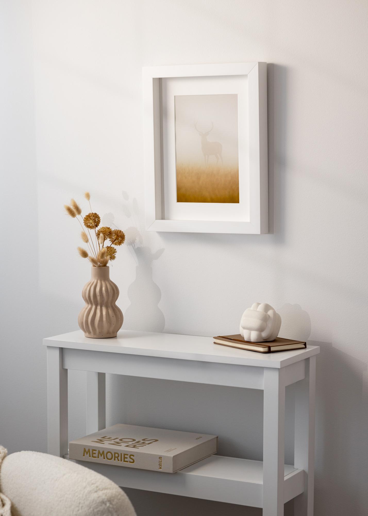 Moldura Tyr Branco é uma moldura de fotos elegante e sofisticada que é perfeita para realçar as suas fotos favoritas e obras de arte. Com sua cor branca, oferece uma impressão fresca e moderna que se integra na maioria dos estilos de decoração. Quer você queira criar uma parede harmoniosa de quadros ou dar a uma única imagem a atenção que ela merece, esta moldura é uma excelente escolha.