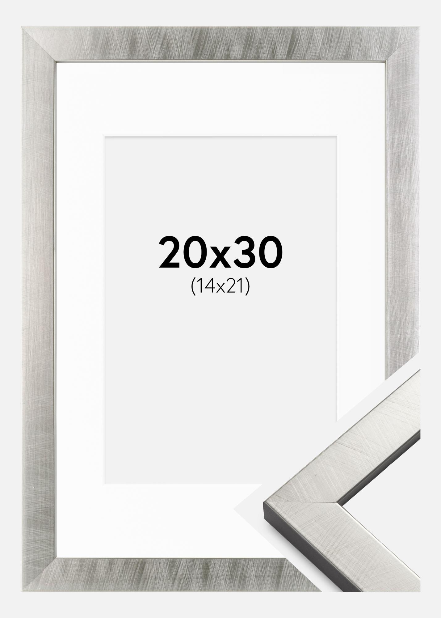 Moldura Uppsala Prateado 20x30 cm - Passe-partout Branco 15x22 cm
