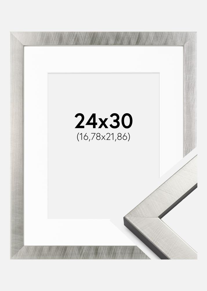 Moldura Uppsala Prateado 24x30 cm - Passe-partout Branco 7x9 inches