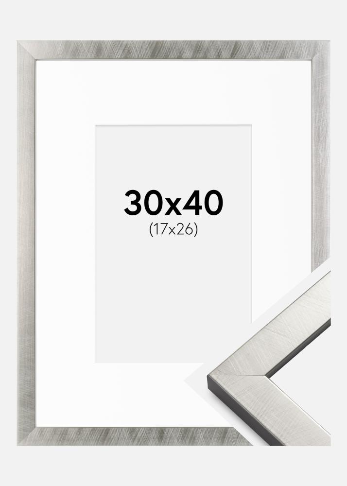 Moldura Uppsala Prateado 30x40 cm - Passe-partout Branco 18x27 cm