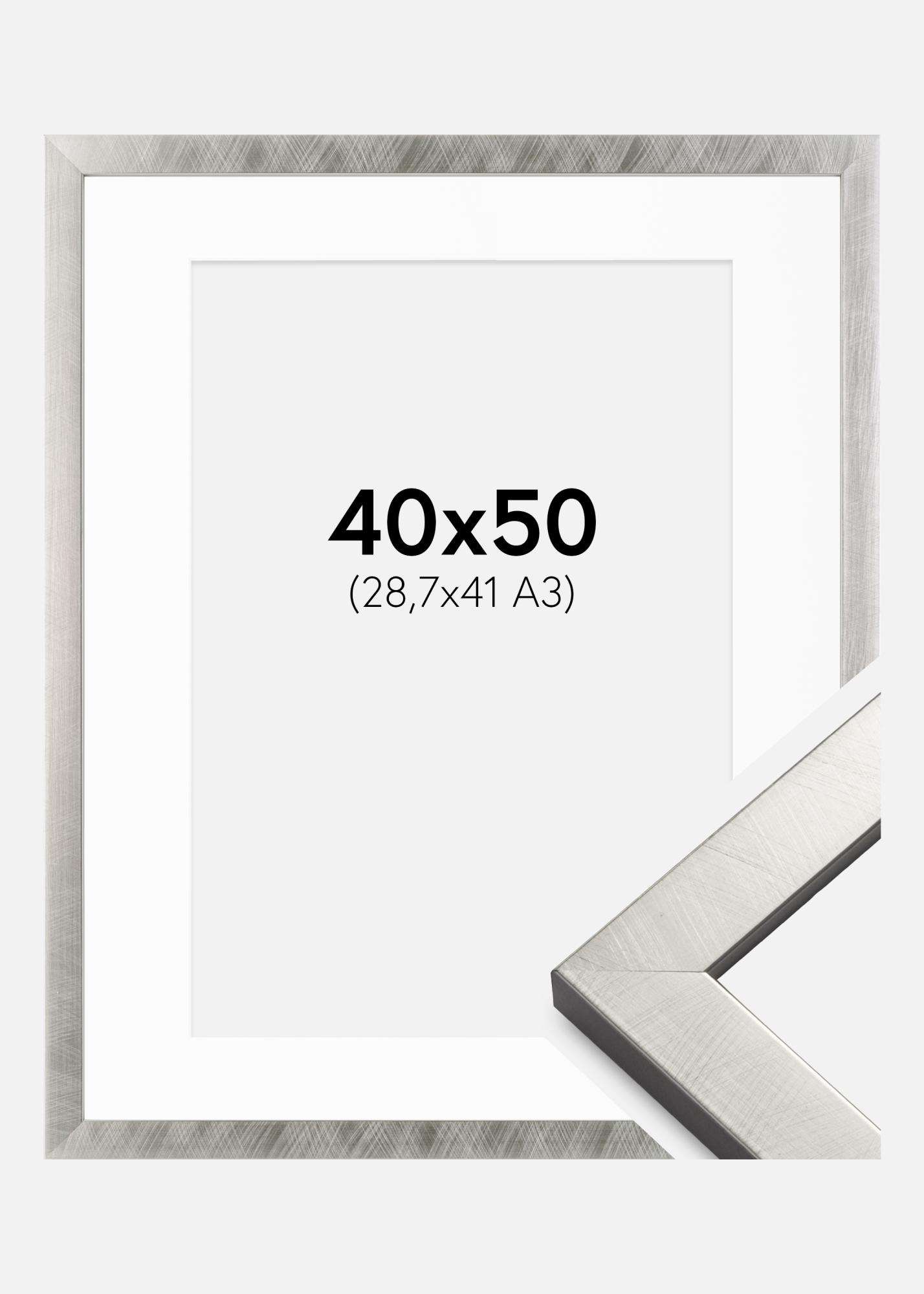 Moldura Uppsala Prateado 40x50 cm - Passe-partout Branco 29,7x42 cm (A3)