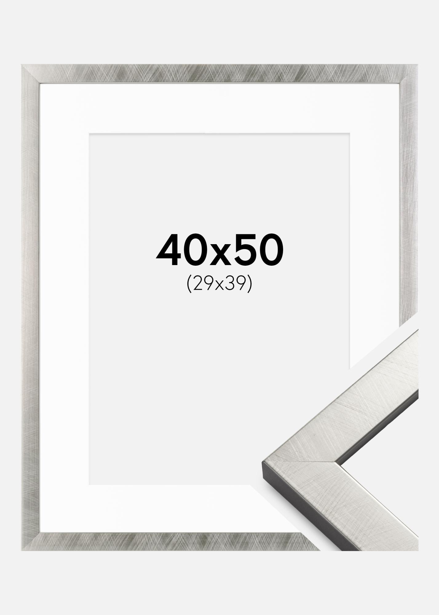 Moldura Uppsala Prateado 40x50 cm - Passe-partout Branco 30x40 cm
