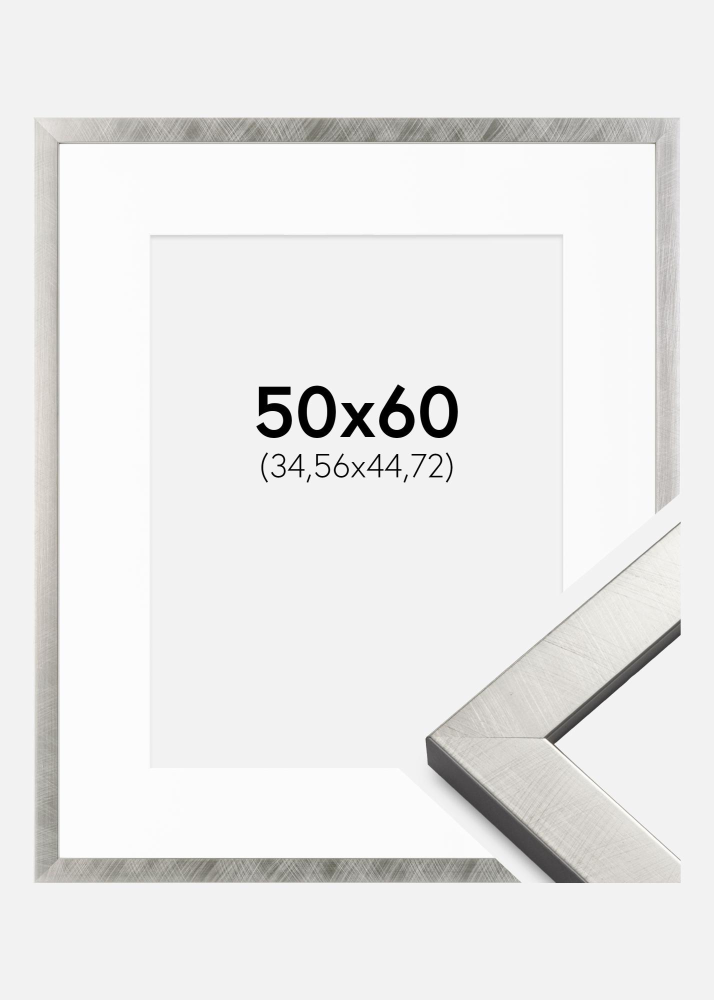 Moldura Uppsala Prateado 50x60 cm - Passe-partout Branco 14x18 inches
