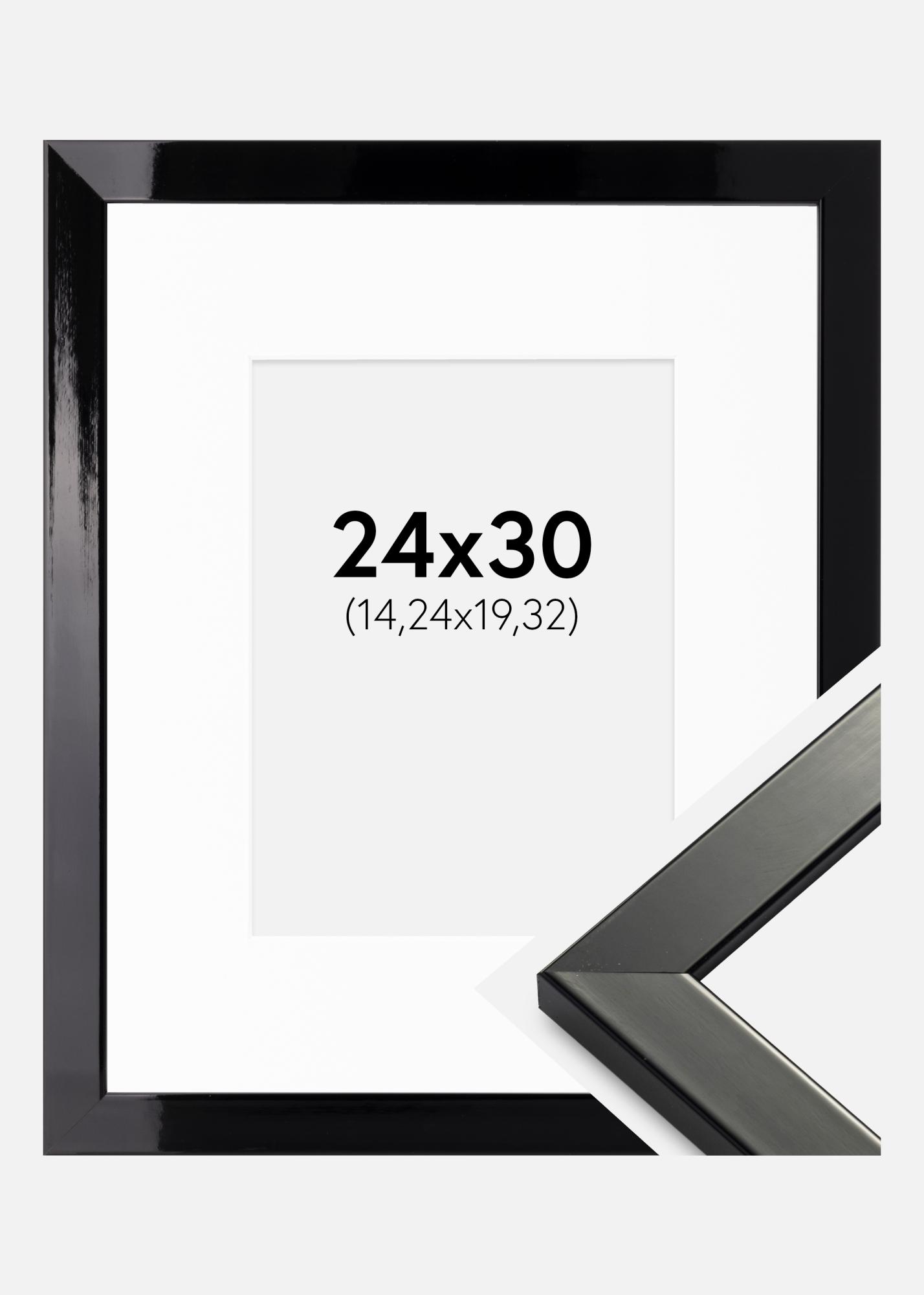 Moldura Uppsala Preto Acabamento brilhante 24x30 - Passe-partout Branco 6x8 in