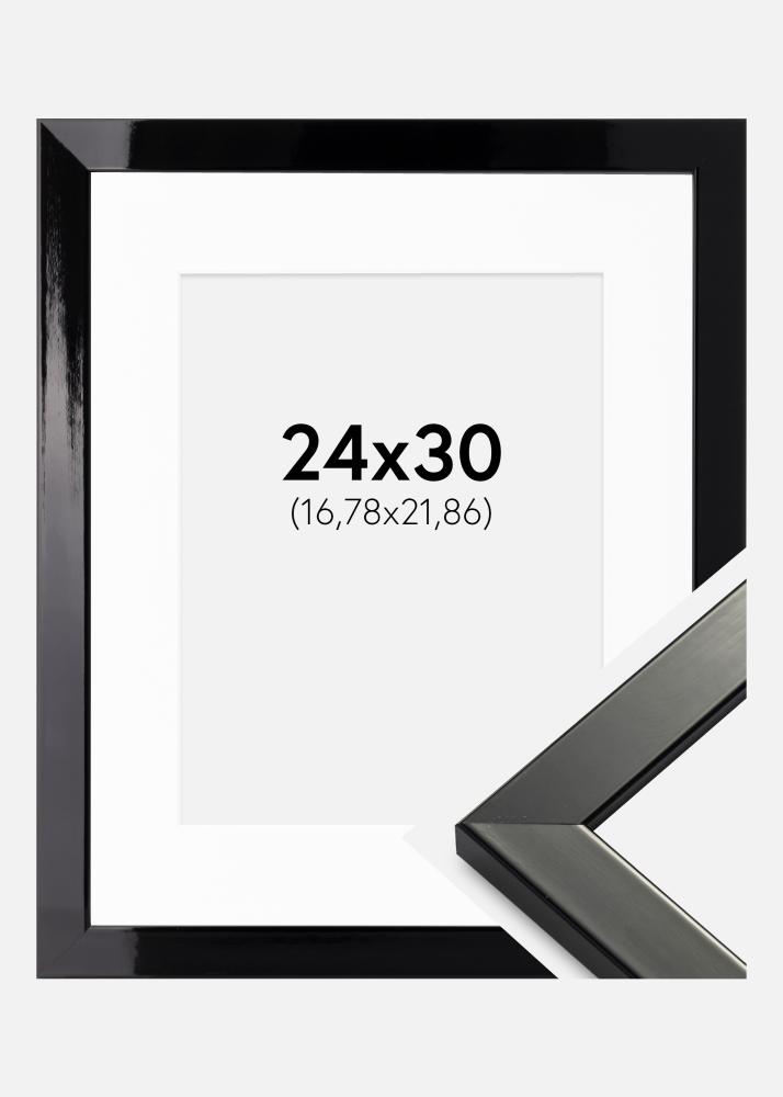 Moldura Uppsala Preto Acabamento brilhante 24x30 - Passe-partout Branco 7x9 in