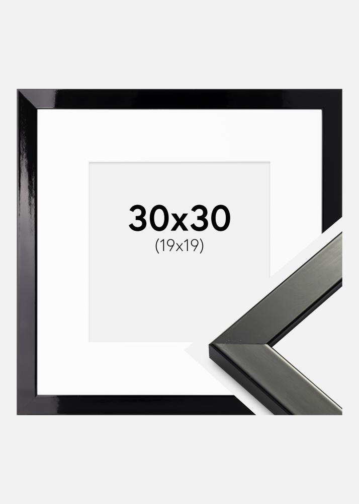 Moldura Uppsala Preto Acabamento brilhante 30x30 - Passe-partout Branco 20x20 cm