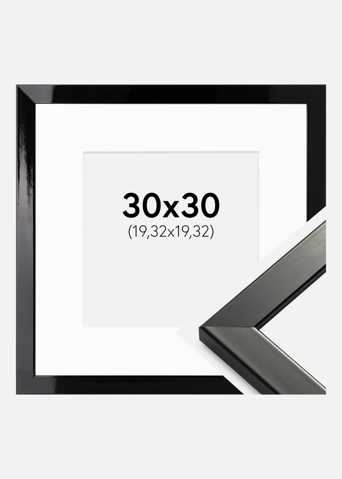 Moldura Uppsala Preto Acabamento brilhante 30x30 - Passe-partout Branco 8x8 in