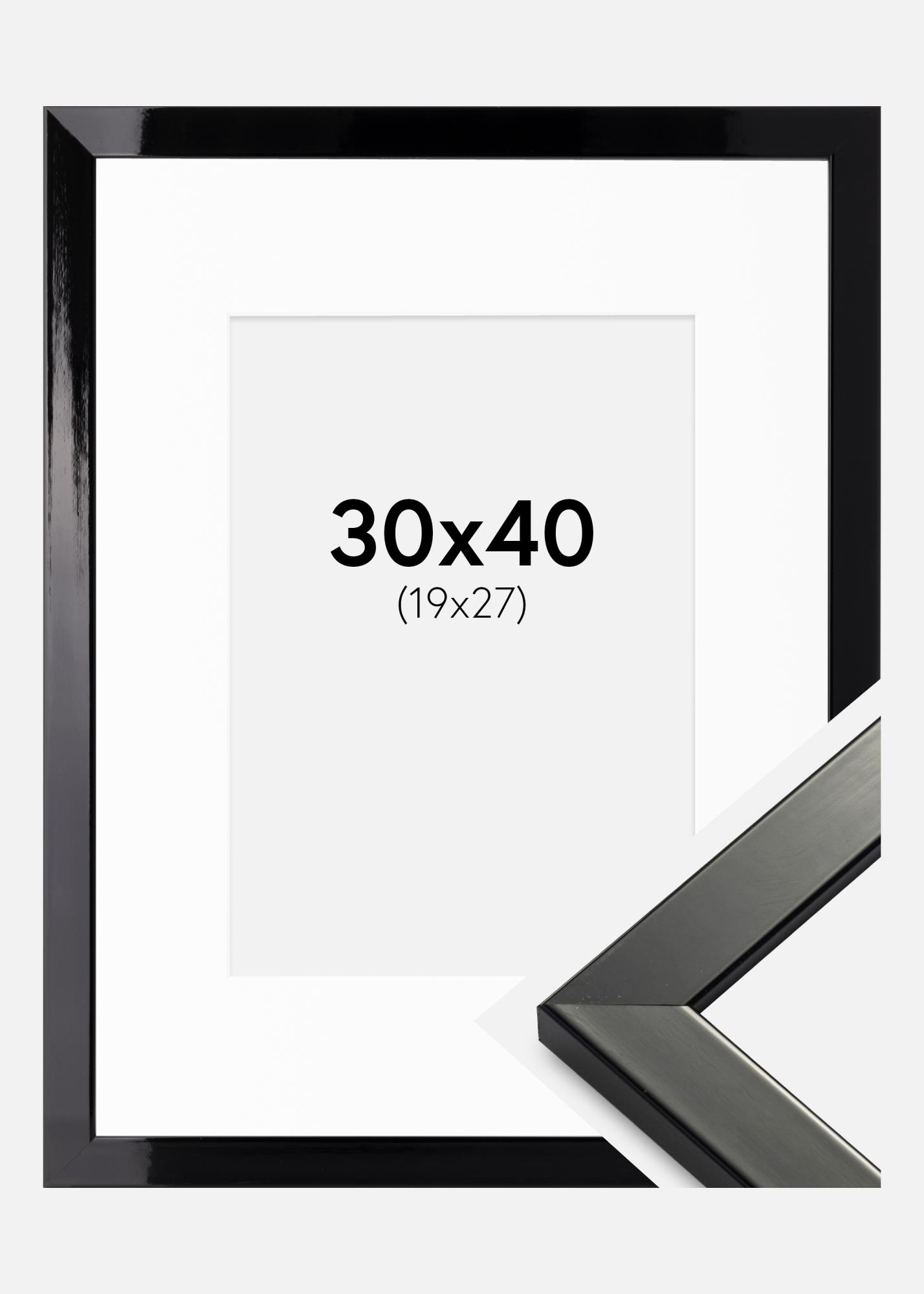 Moldura Uppsala Preto Acabamento brilhante 30x40 - Passe-partout Branco 20x28 cm