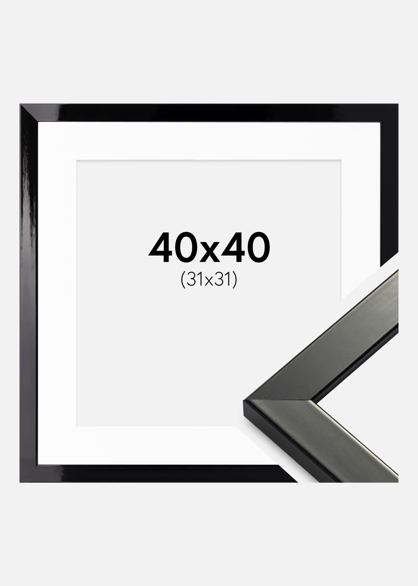 Moldura Uppsala Preto Acabamento brilhante 40x40 - Passe-partout Branco 32x32 cm