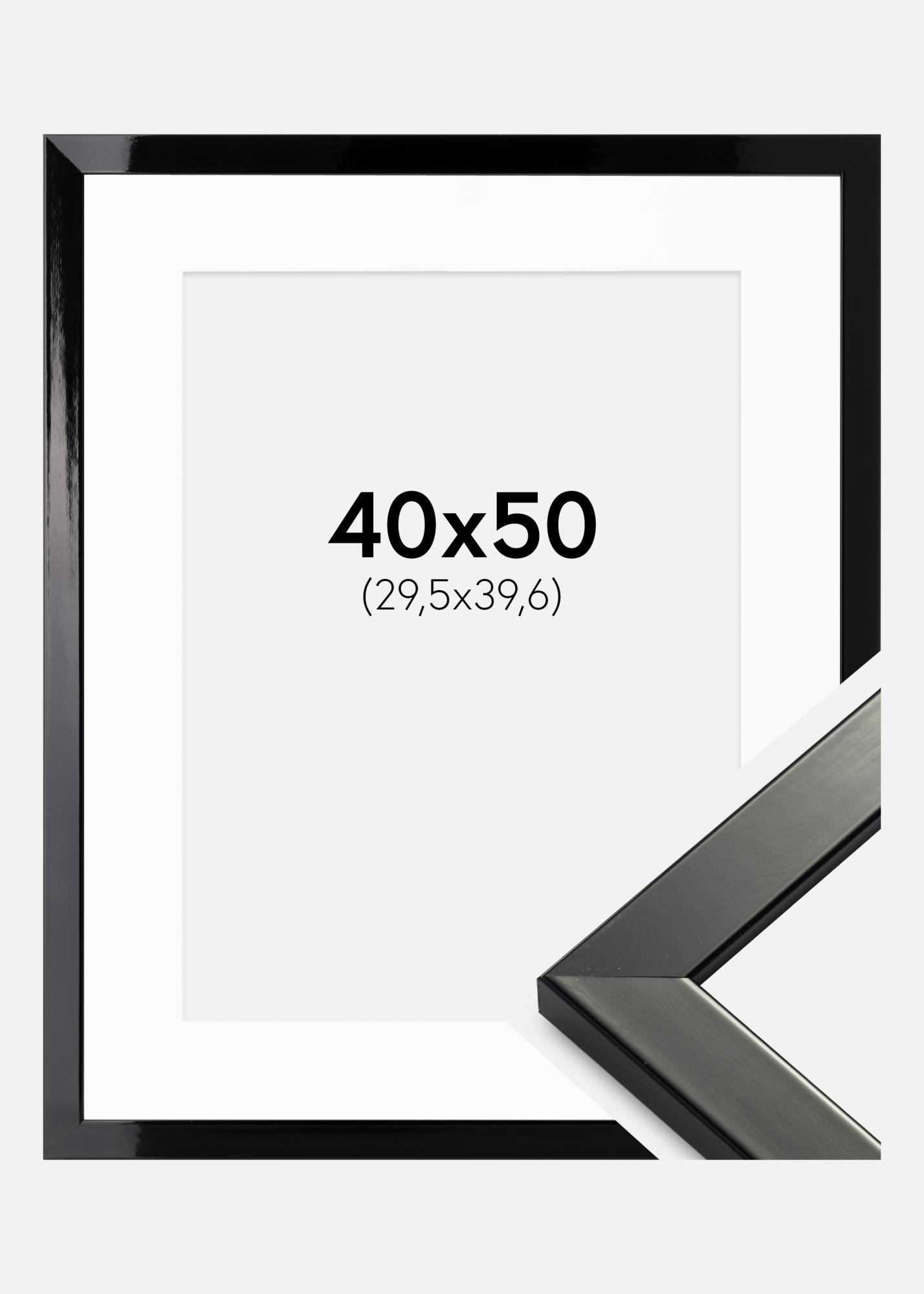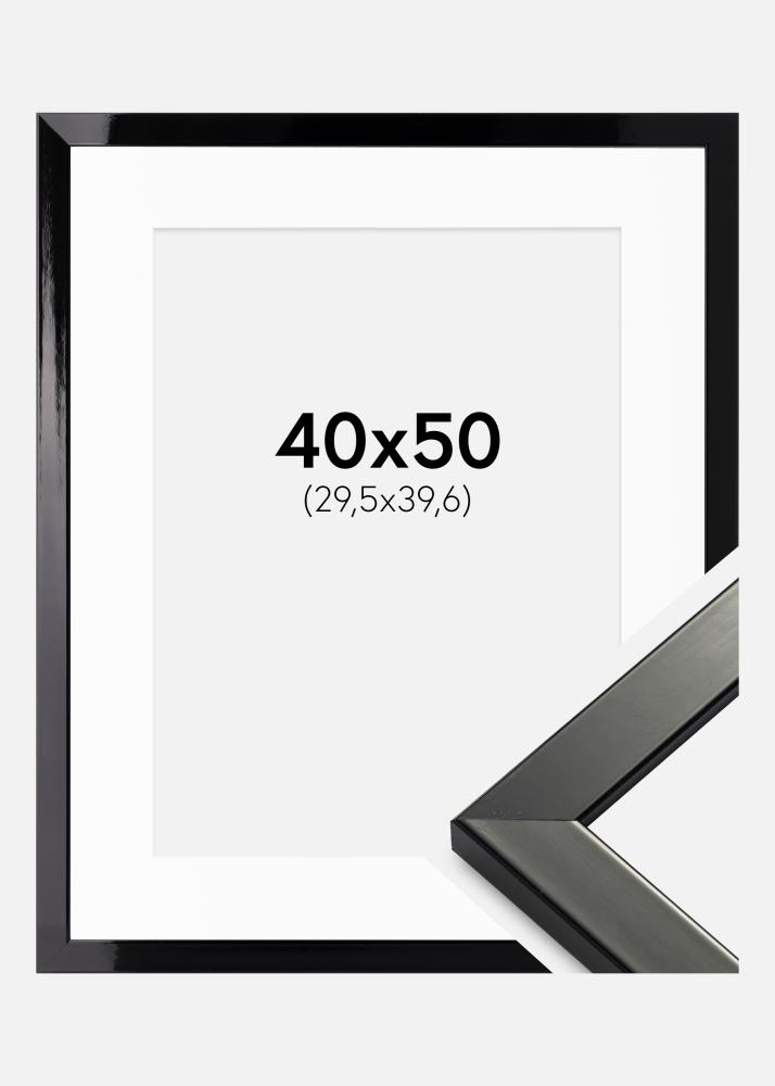 Moldura Uppsala Preto Acabamento brilhante 40x50 - Passe-partout Branco 12x16 in