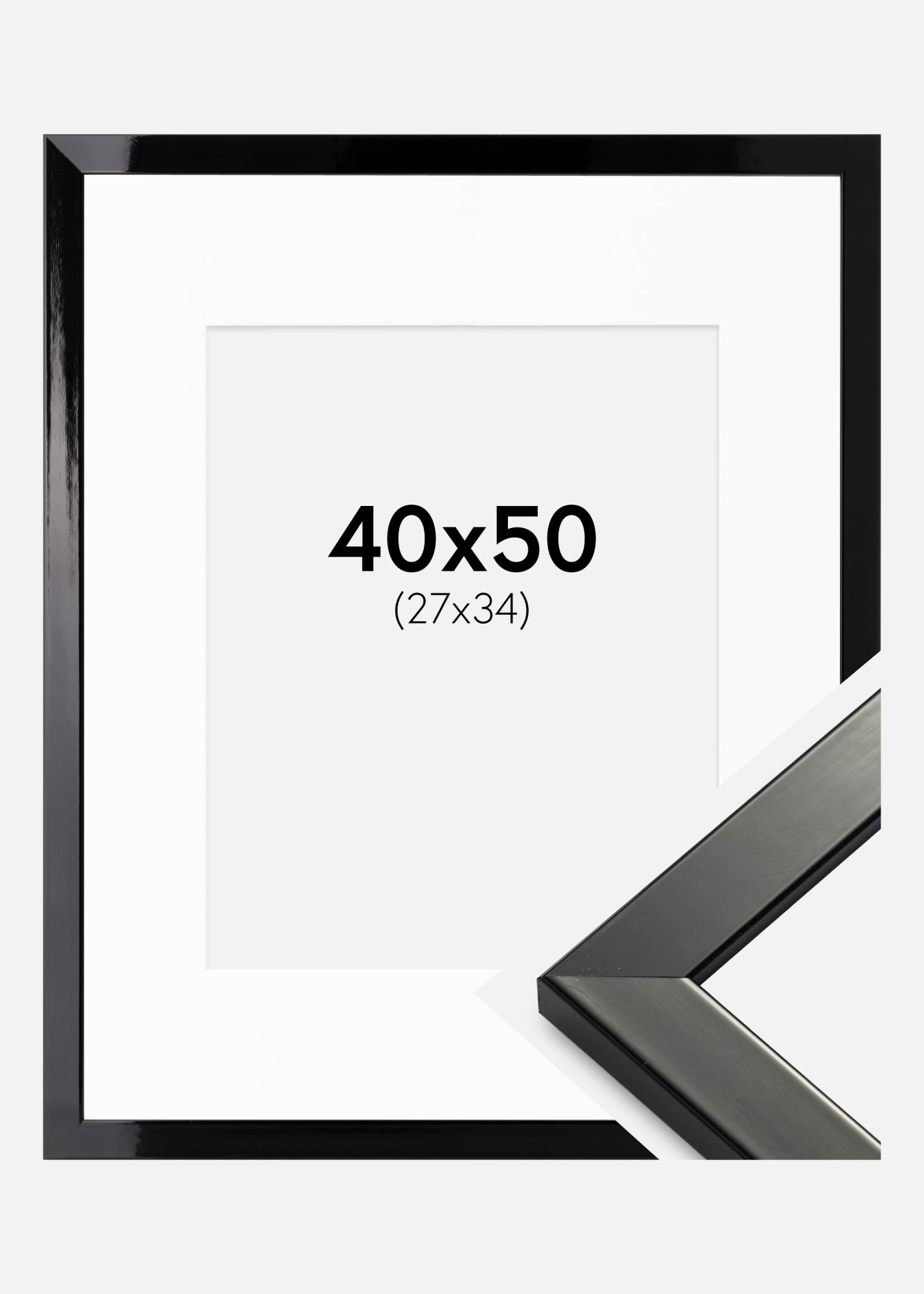 Moldura Uppsala Preto Acabamento brilhante 40x50 - Passe-partout Branco 28x35 cm