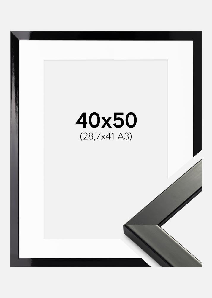 Moldura Uppsala Preto Acabamento brilhante 40x50 - Passe-partout Branco 29,7x42