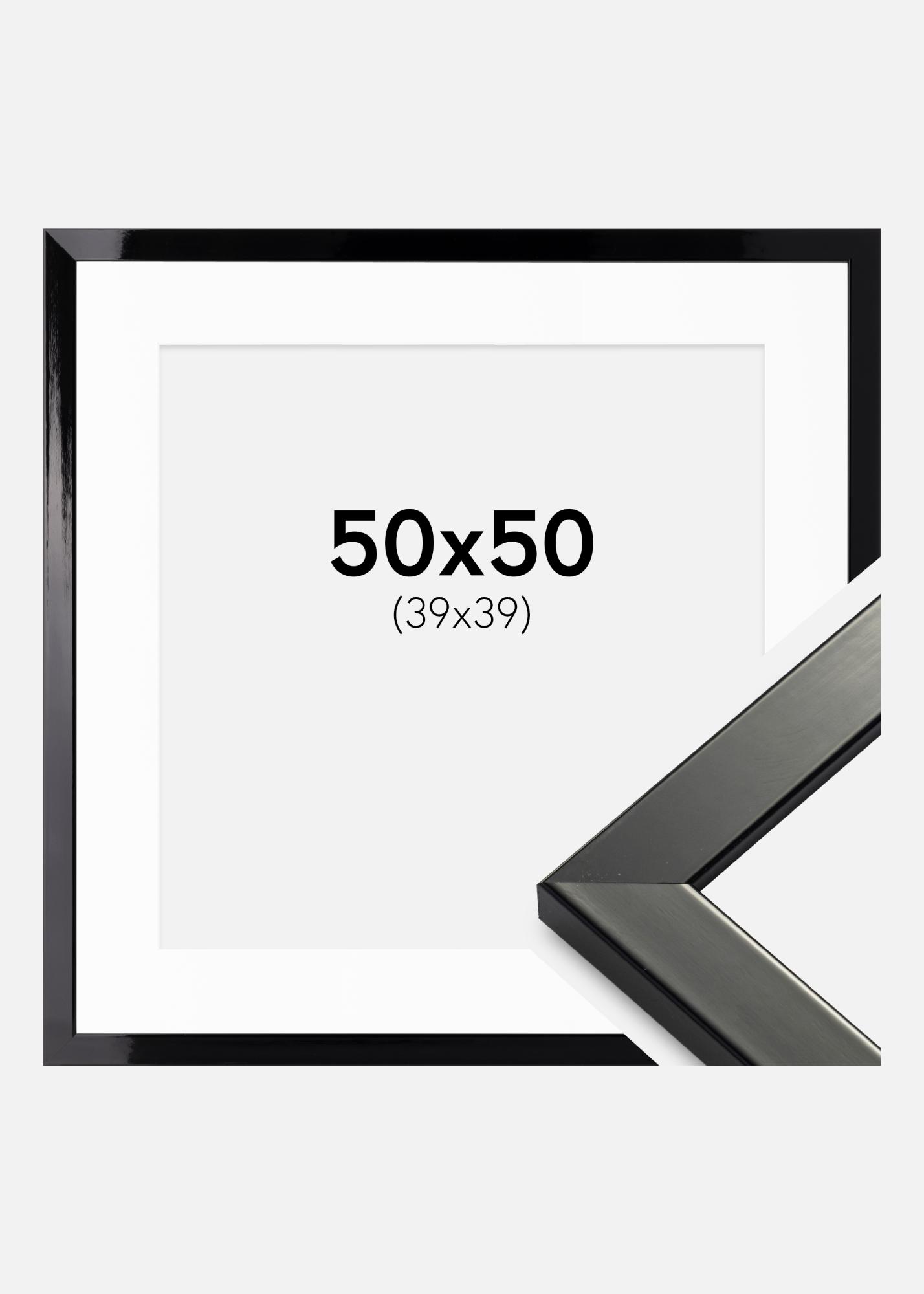 Moldura Uppsala Preto Acabamento brilhante 50x50 - Passe-partout Branco 40x40 cm