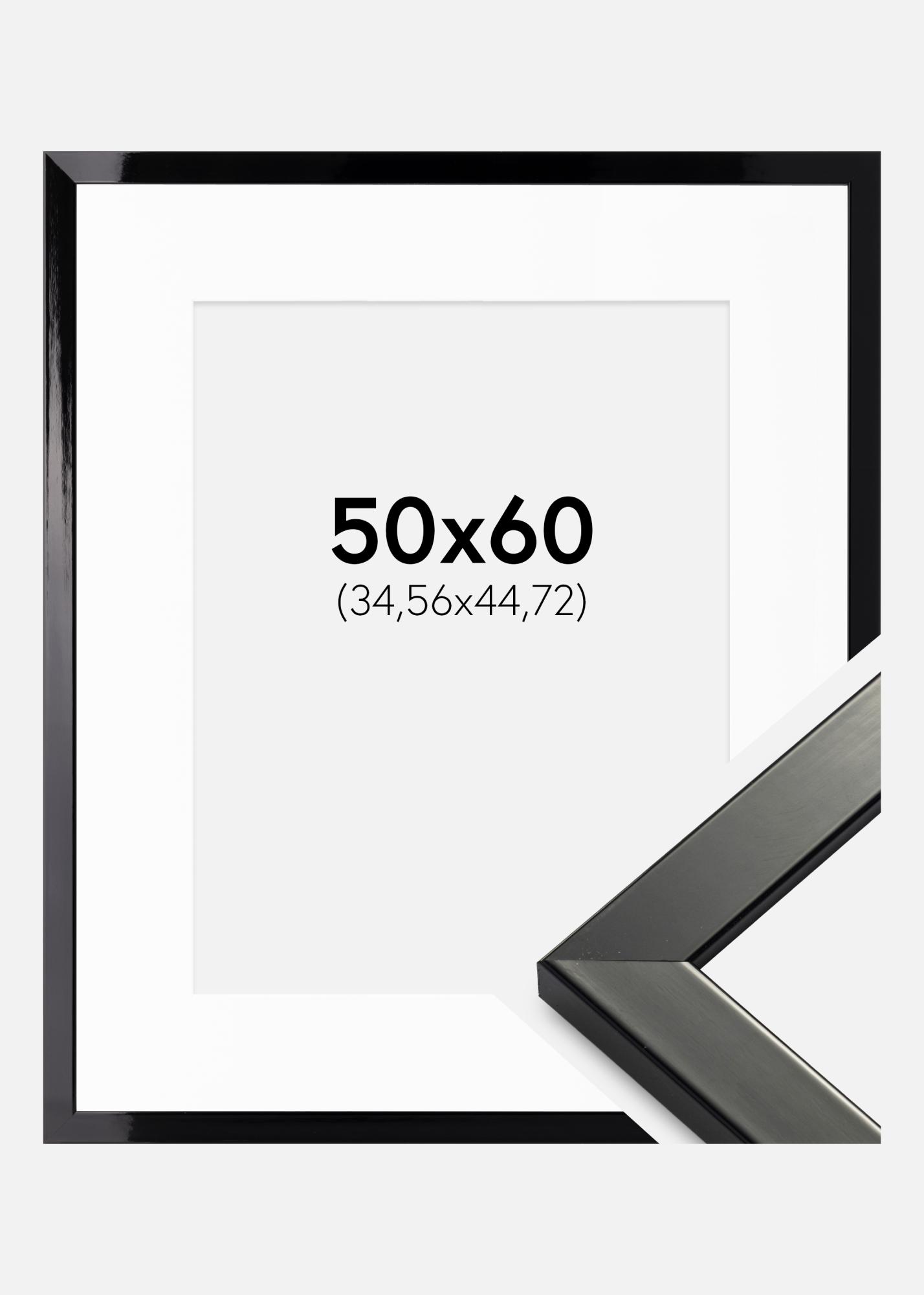 Moldura Uppsala Preto Acabamento brilhante 50x60 - Passe-partout Branco 14x18 in