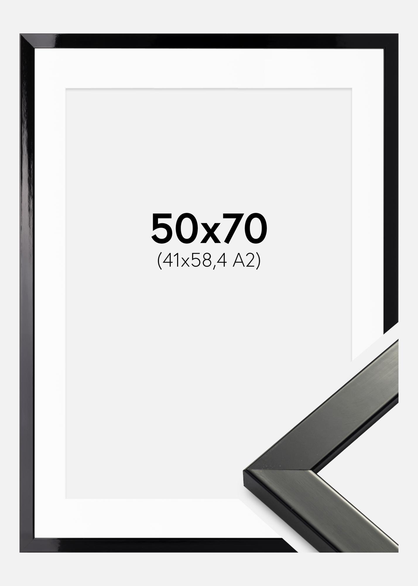 Moldura Uppsala Preto Acabamento brilhante 50x70 - Passe-partout Branco 42x59,4