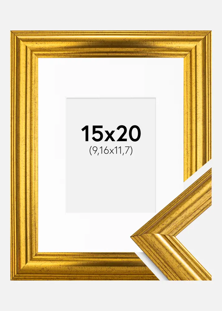 Moldura Västkusten Dourado 15x20 cm - Passe-partout Branco 4x5 inches