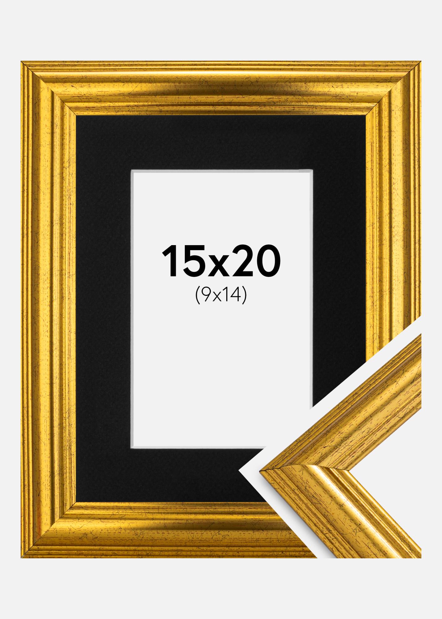 Moldura Västkusten Dourado 15x20 cm - Passe-partout Preto 10x15 cm