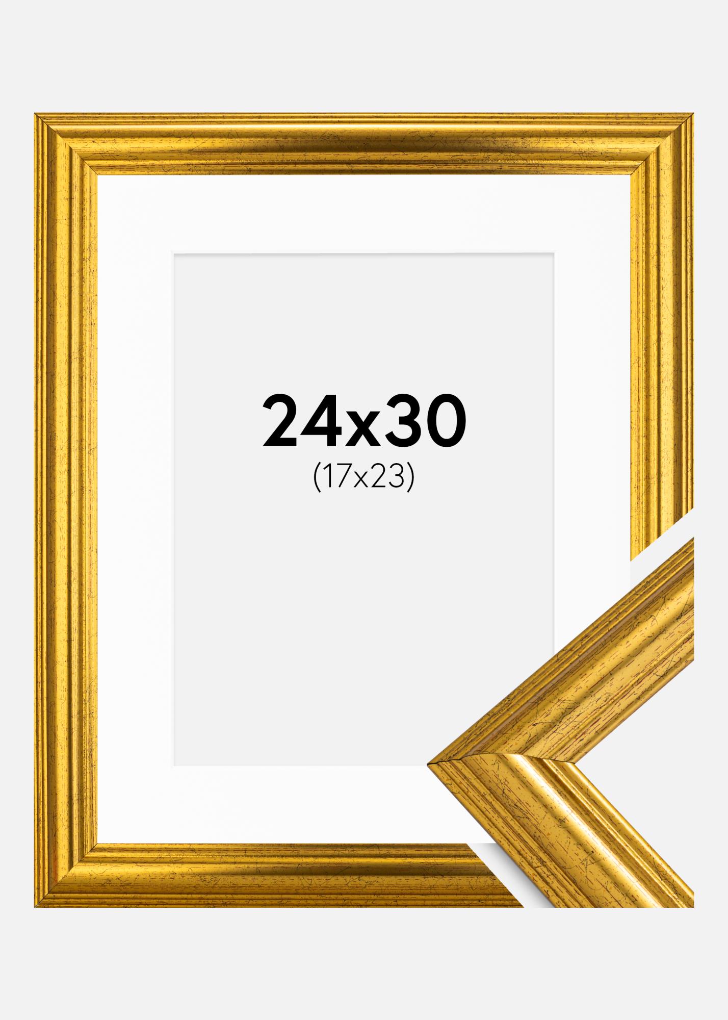 Moldura Västkusten Dourado 24x30 cm - Passe-partout Branco 18x24 cm