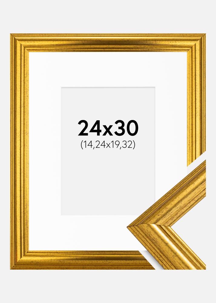 Moldura Västkusten Dourado 24x30 cm - Passe-partout Branco 6x8 inches