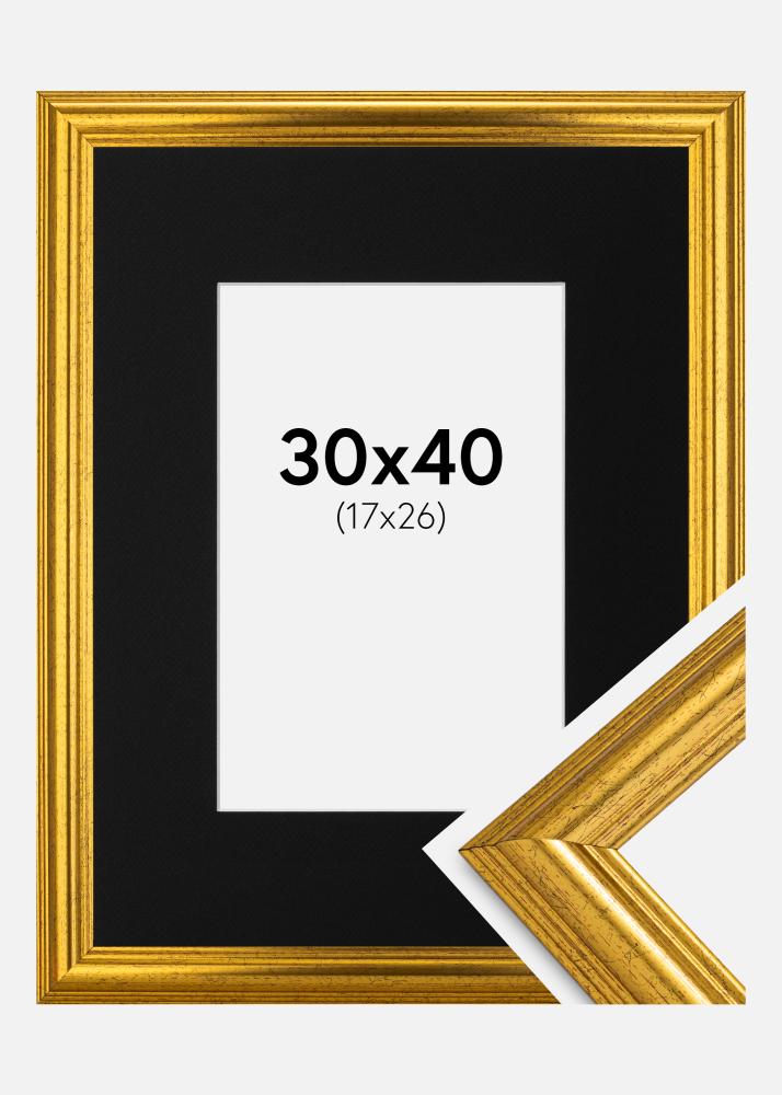 Moldura Västkusten Dourado 30x40 cm - Passe-partout Preto 18x27 cm